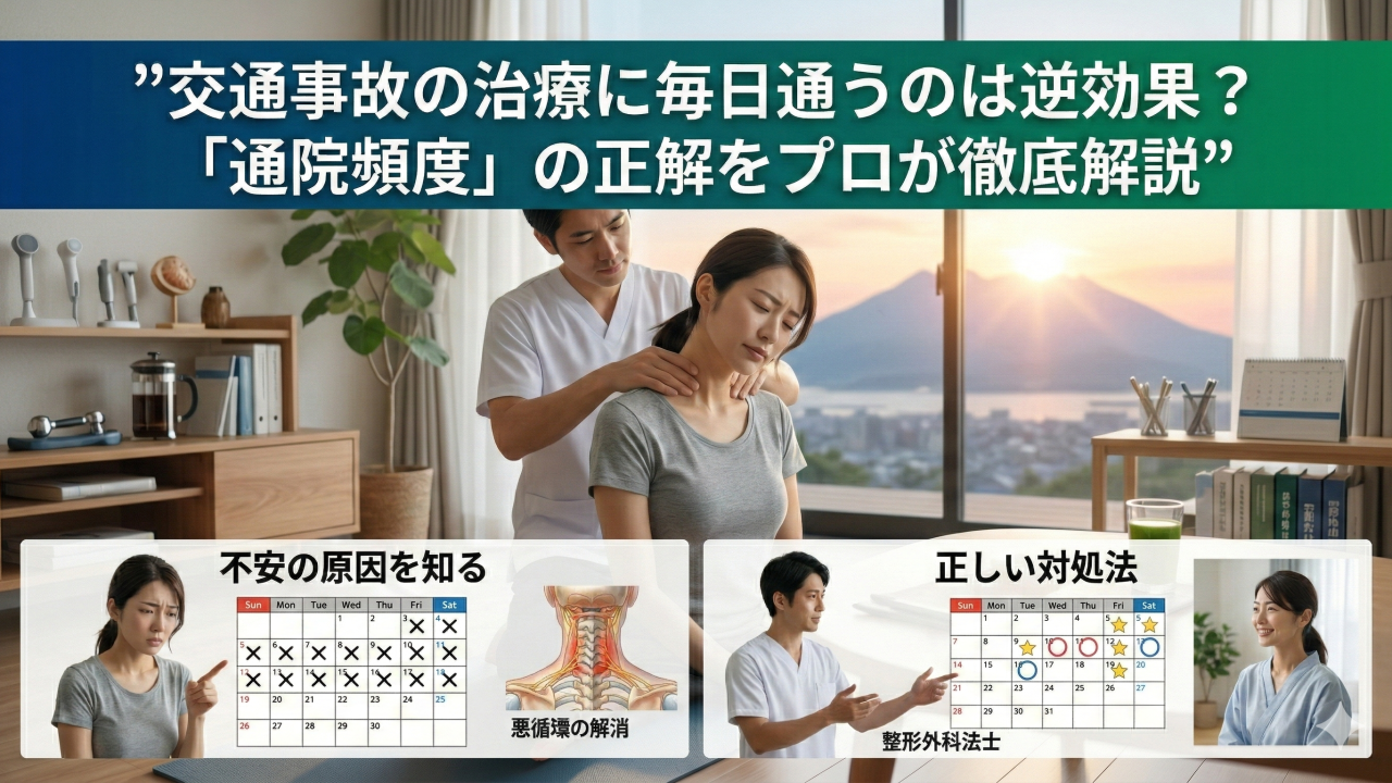 「毎日通うのは逆効果」という噂を聞いて、通院を控えてしまう方もいらっしゃいますが、実はその判断が「体の回復」と「将来の補償」の両方を台無しにしてしまうリスクがあります。